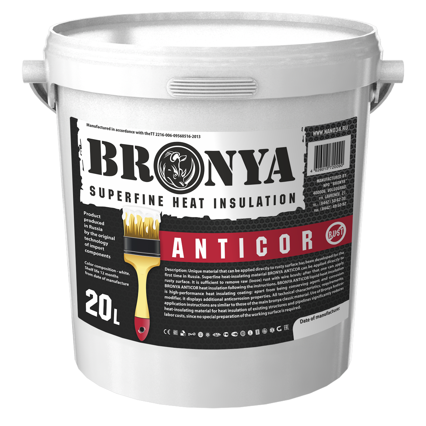 A Bronya Anticor az első olyan ultravékony hőszigetelő és antikorróziós bevonat, amely közvetlenül rozsdás felületekre is felhordható, így nincs szükség előzetes, teljes rozsdamentesítésre. Kiemelkedő tapadási képességeinek és rozsdaellenálló tulajdonságainak köszönhetően hosszú távú védelmet nyújt a fémfelületeknek, megakadályozza a további korróziót, és hőszigetelő hatásával stabilizálja a felületi hőmérsékletet.