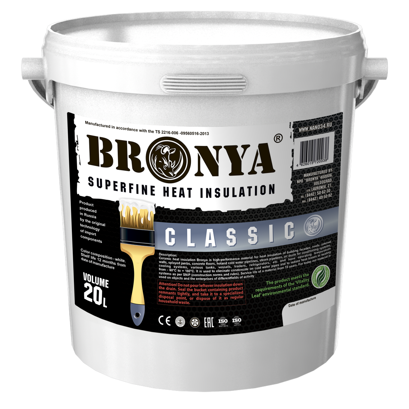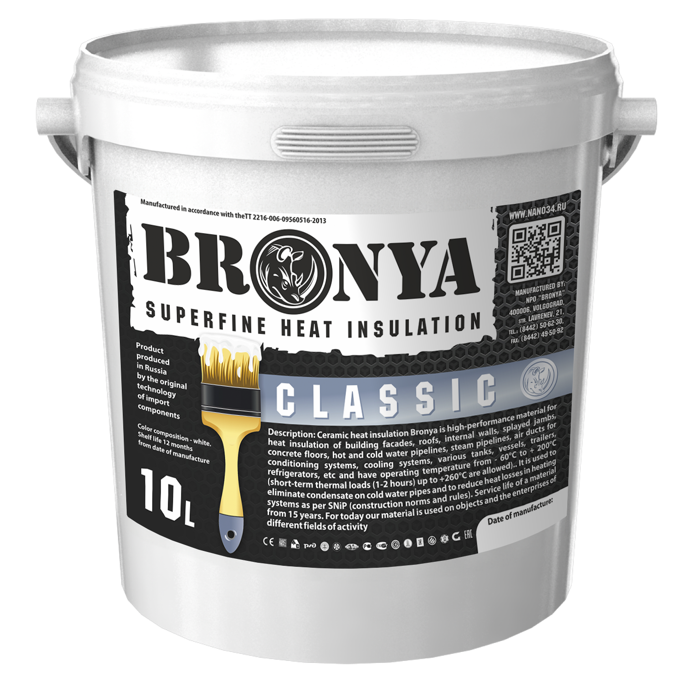 A Bronya Classic egy univerzális, ultravékony hőszigetelő bevonat, amely számos ipari és lakossági alkalmazásra alkalmas. Kiváló tapadási tulajdonságainak köszönhetően stabilan rögzül fémekhez, valamint más építőanyagokhoz, és hatékonyan csökkenti a hőveszteséget vagy a felmelegedést.